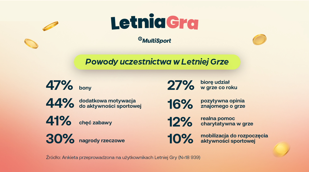 4 czerwca 2025 roku ruszyła kolejna, 8. edycja Letniej Gry – inicjatywy grywalizacyjnej promującej aktywność fizyczną. Akcja skierowana do posiadaczy kart MultiSport od lat zachęca do bycia aktywnym latem, a także imponuje skalą zaangażowania uczestników oraz innowacyjnym podejściem do motywacji sportowej - w zeszłym roku wzięło w niej udział blisko 100 tys. uczestników. Za sukcesem projektu stoi precyzyjnie zaprojektowany system zadań, nagród i komunikacji marketingowej – w pełni oparty o mechanizmy grywalizacyjne, które z roku na rok są jeszcze bardziej udoskonalane przez MultiSport.